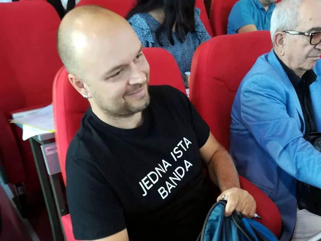 Nonićeva poruka ispisana belim printom na crnoj majici “Jedna ista banda” očigledno je najviše zasmetala odborniku Perišiću ili vladajućoj većini koju on predstavlja kao šef odborničke grupe SNS, pa je zato zatražio izbacivanje kolege.