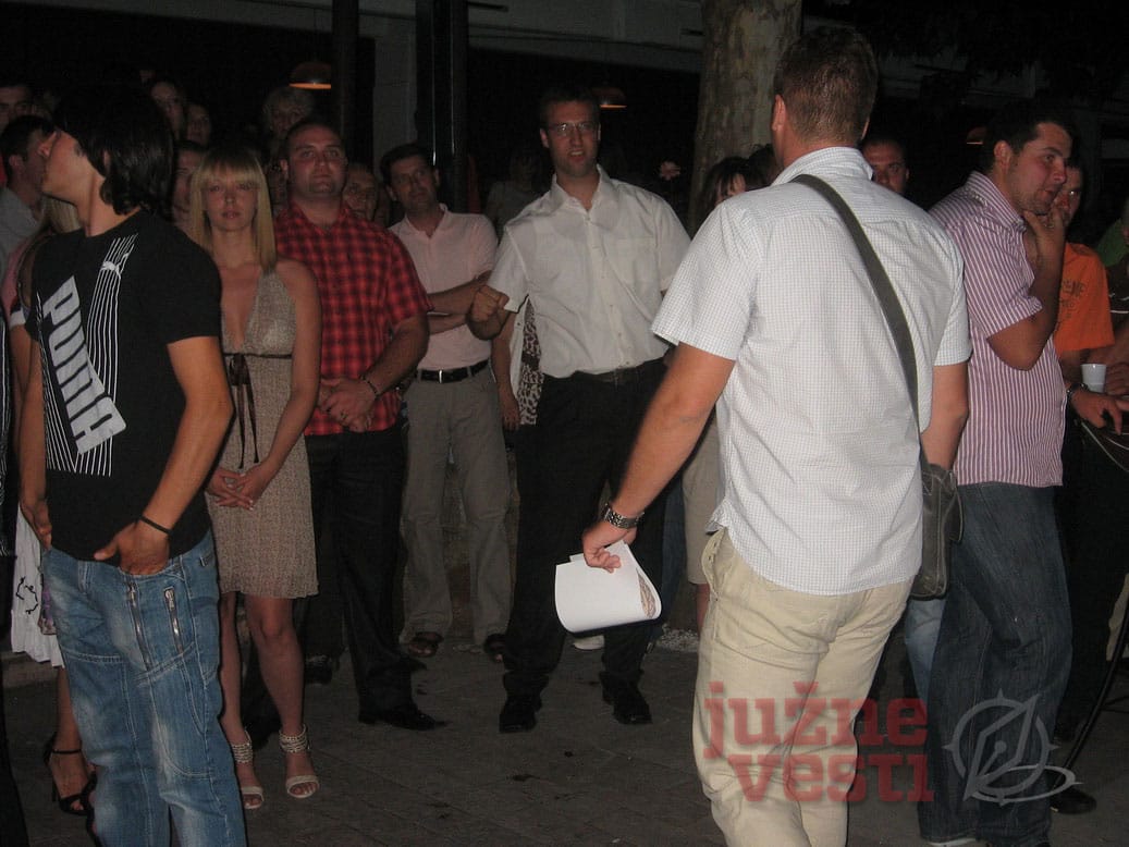 Iako su na početku bili najavljeni, predstavnici DS-a su se na skupu pojavili nešto kasnije. Na našu opasku da su oni jedini stajali, dok je za ostale bio rezervisan separe, jedan od vodećih demokrata u Vranju dr Igor Andonov je rekao „Mi sve ovo podnosimo stojeći“.