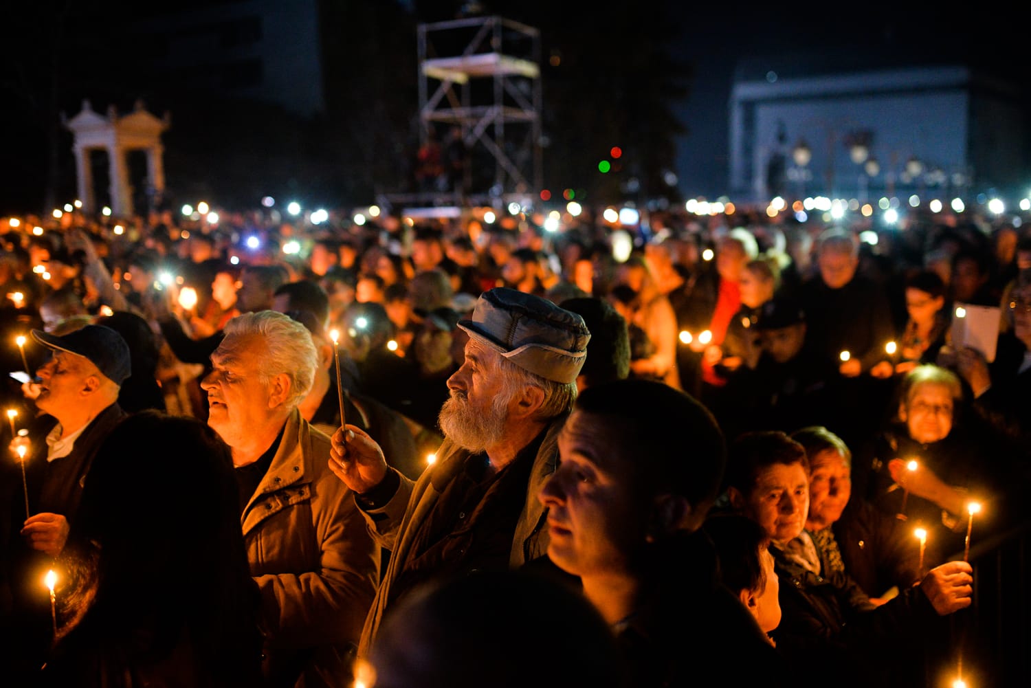 Govor patrijarha Irineja koji je o protestima rekao da “ono što vidimo danas na ulicama nije dobro”, kao i predsednika Aleksandra Vučića koji je istakao da je on tako mali u Niš sam doveo 6 fabrika, analitičari, ali i brojni građani ocenjuju kao politički. Za parastos žrtvama i obeležavanje 20 godina od početka NATO bombardovanja kažu da je preraslo u politički miting svojstven vladajućoj Srpskoj naprednoj stranci, koji vređa patnju ožalošćenih porodica stradalih.