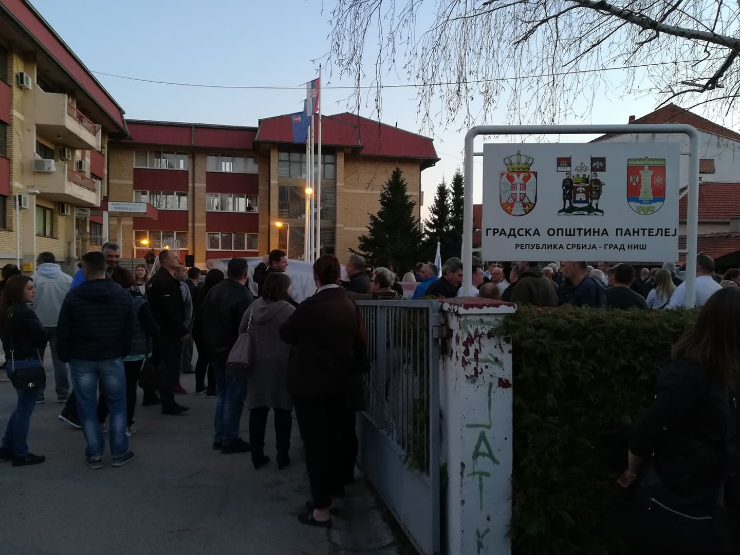 Noseći parole „Pantelej uz Vučića“ i „Dole fašisti i ljotićevci“, više stotina građana, članova Srpske napredne stranke, opštinsko i deo gradskog rukovodstva, nekoliko direktora gradskih preduzeća i ustanova, okupilo se ispred zgrade Opštine Pantelej u Nišu. Kontramiting beogradskim protestima ispred zgrade Predsedništva, bio je, poručili su, povod da se okupe.