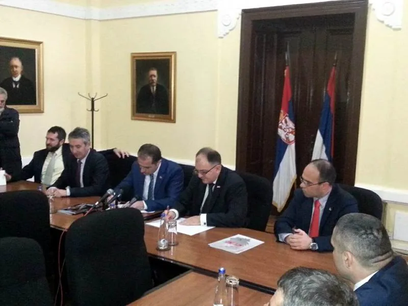 Potpise na sporazum kojim je, kako se čulo, definisano učešće socijalista u vlasti koju predvode naprednjaci, stavili su predsednici gradskih odbora SNS-a Slaviša Bulatović i SPS-a Zoran Antić.