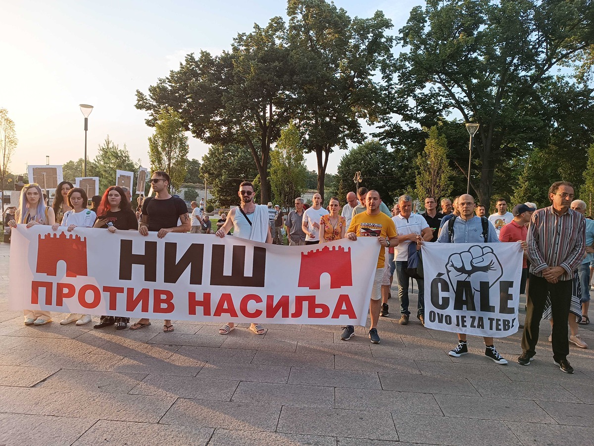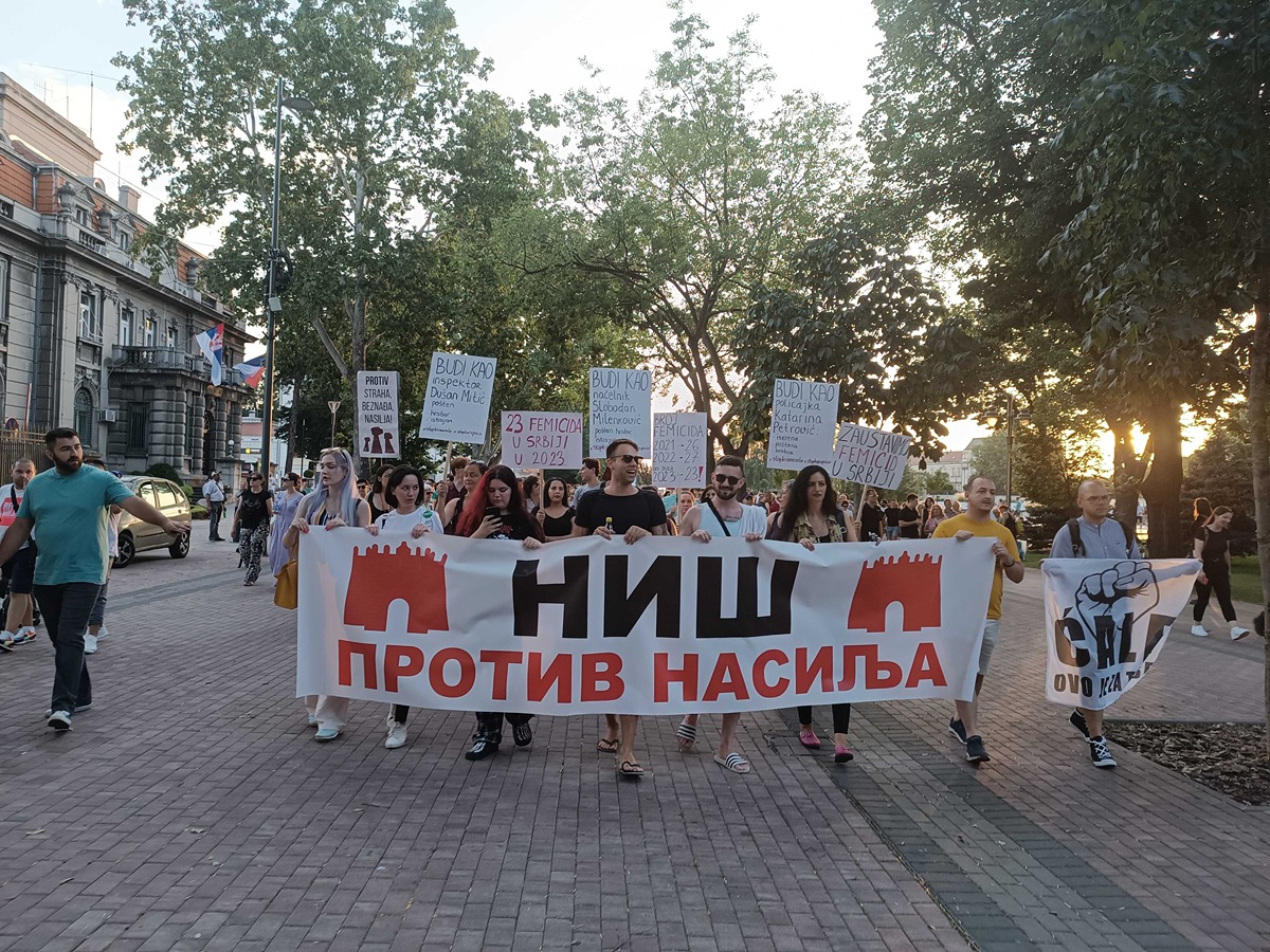 Oko 19 sati građani su počeli da se okupljaju ispred Gradske kuće u Nišu i kolona je krenula Ulicom 7. juli, a iako je plan bio da se šesti niški protest „Srbija protiv nasilja“ završi na kružnom toku kod Delte, ipak će blokirati kružni tok kod Jagodin-male. Ispred kabineta gradonačelnice obratili su se aktivistkinja Danijela Vujošević, studentkinja Milica Marković i profesor Bojan Blagojević.
