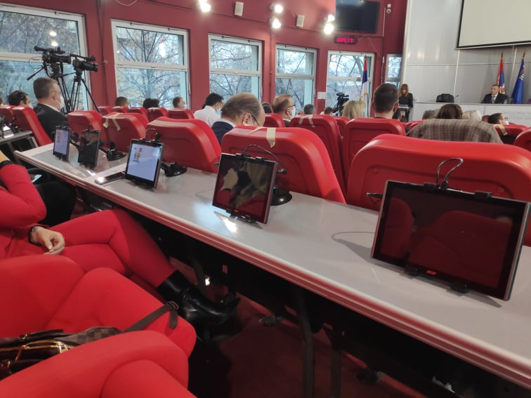 Nakon višegodišnjeg najavljivanja digitalizacije niškog parlamenta, na skupštinskim klupama su konačno postavljeni tablet računari, ali će ih odbornici koristiti od početka 2022. godine. Vrednost softvera i tableta je 150.000 dolara, a donator je Švajcarska.