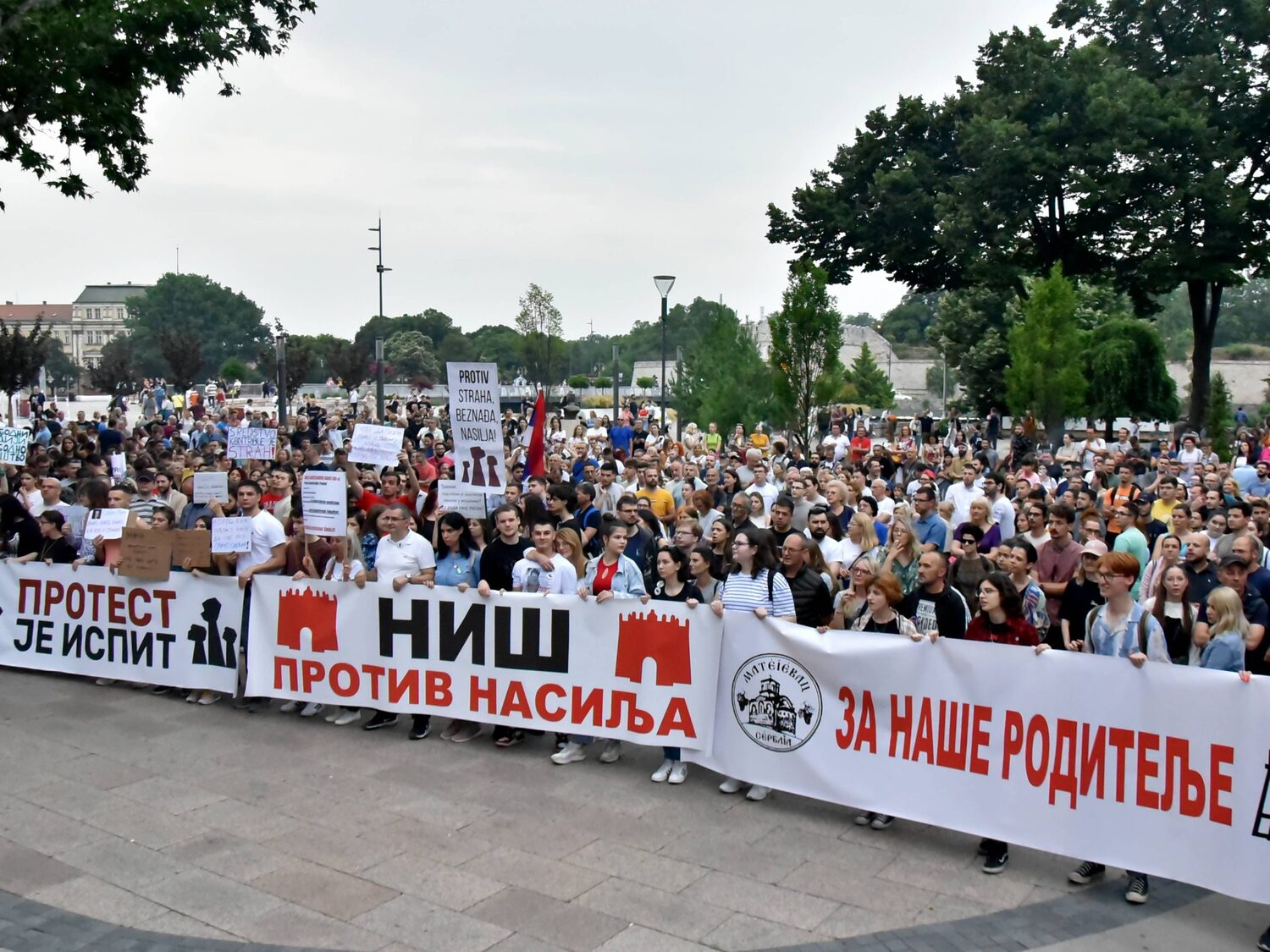 Za razliku od Novog Sada gde je neizvestan nastavak, šesti protest “Srbija protiv nasilja” u Nišu ipak je zakazan za petak, 21. jul. Okupljanje je opet ispred Gradske kuće u 19 sati, dok će šetnja biti završena kod kružnog toka kod „Delte“. Organizatori najavljuju da će ga na kratko blokirati.