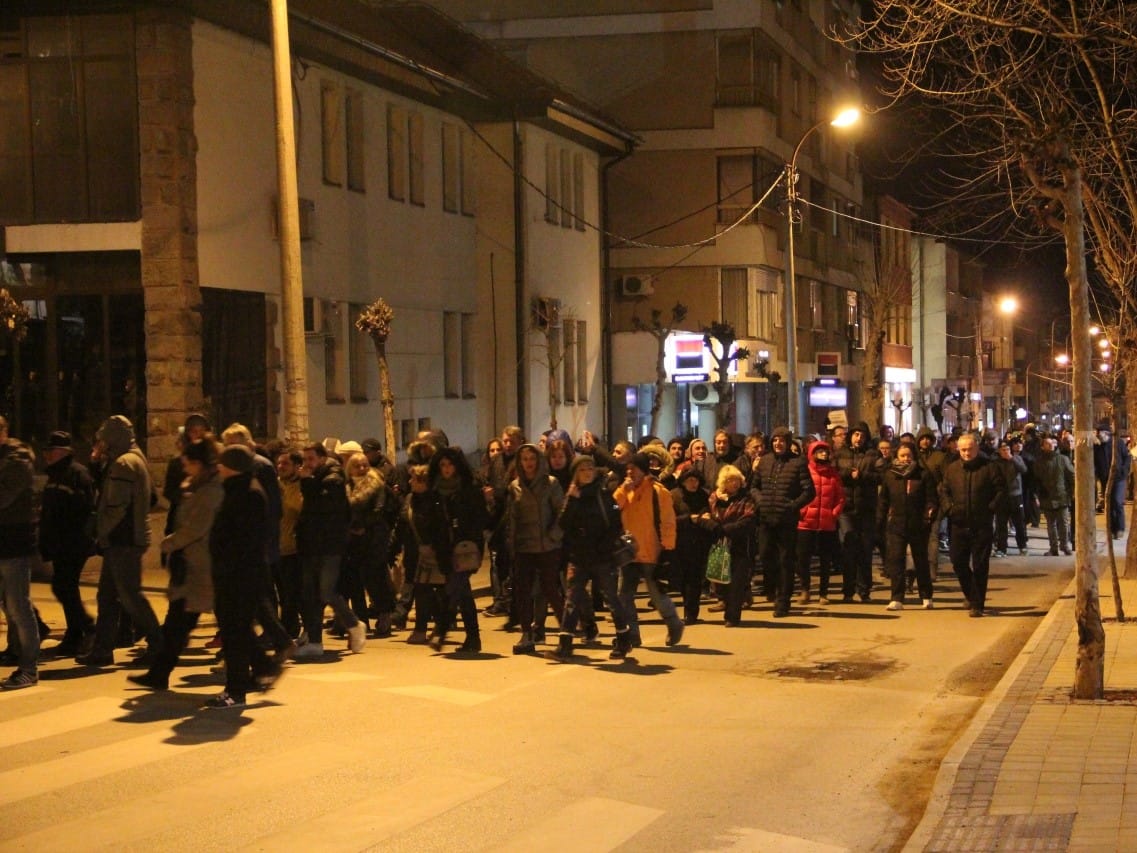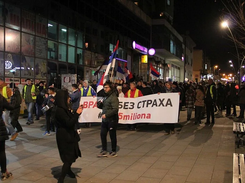 U Vranju je večeras održan treći po redu skup „1 od 5 miliona“ koji je okupio više stotina građana koji su, uprkos hladnom vremenu, krenuli u protestnu šetnju protiv režima Aleksandra Vučića.