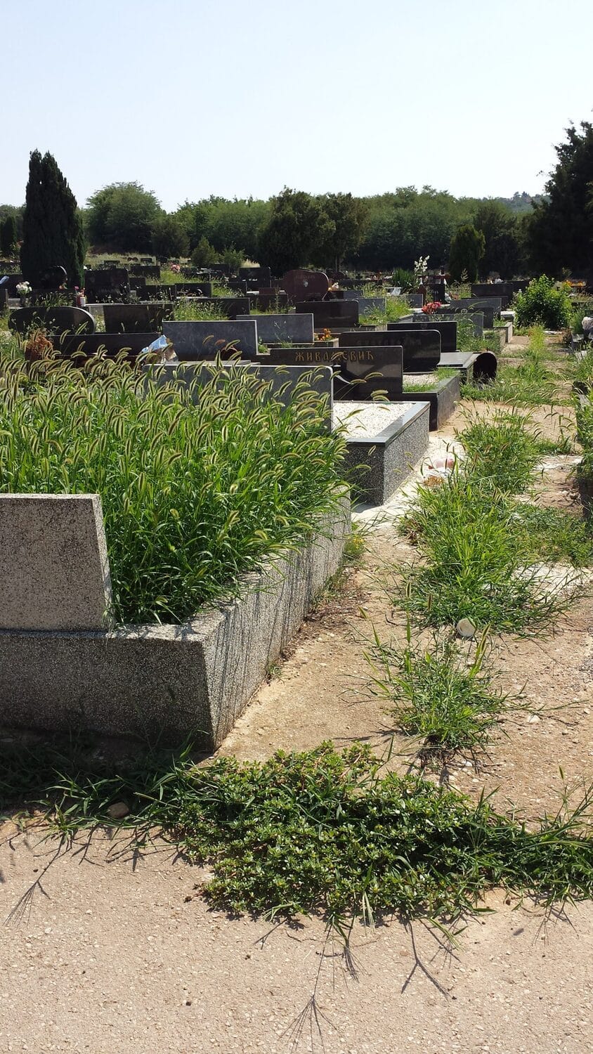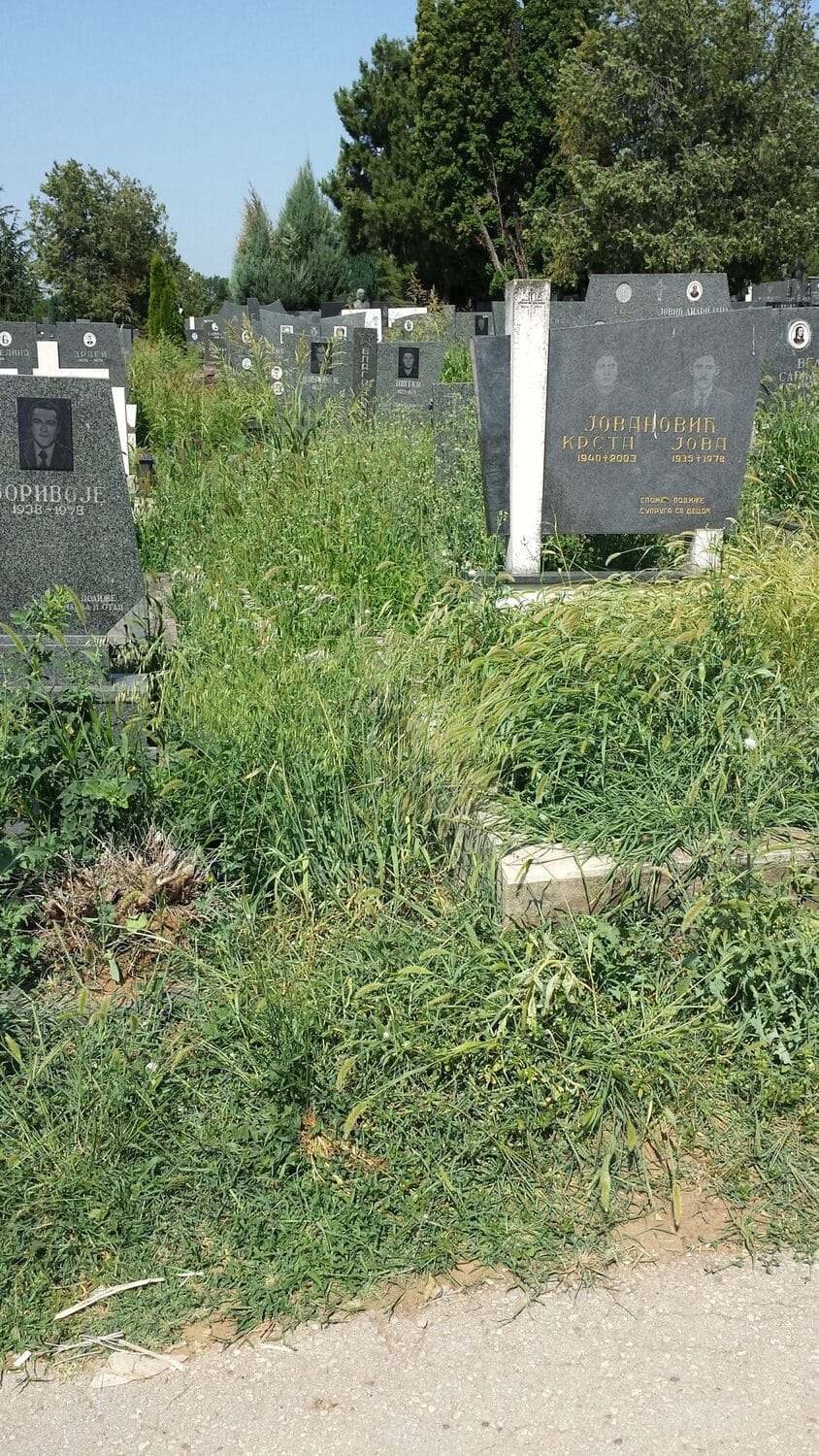 Na novom groblju VISOKA trava ne samo na grobovima vec i IZMEDJU grobnih mesta na parcelama iza crkve i kapele tako da je nemoguće obavljati parastose i prići uopšte. Zbog toliko upošljenih radnika u administraciji od prošle godine je i cena ODRZAVANJA grobnih mesta porasla a "usluga" je mnogo gora što se iz slika da utvrditi.