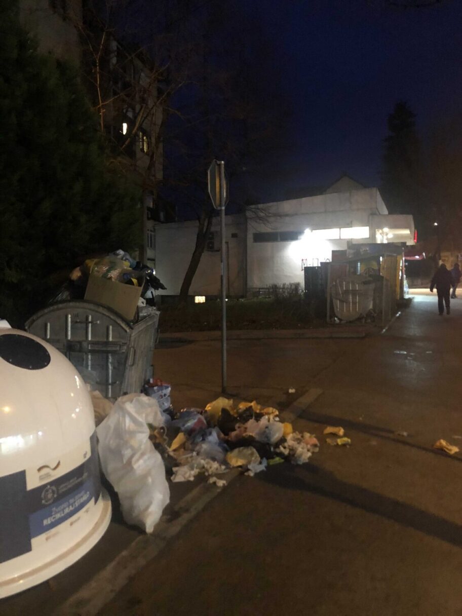 Na mestu gde je nekad bilo 6 kontejnera sad je samo jedan. Na uglu Njegoševe i Rasadnika. Ovako je svaki dan. Životinje raznose kese. Ceo kraj je pun đubra.