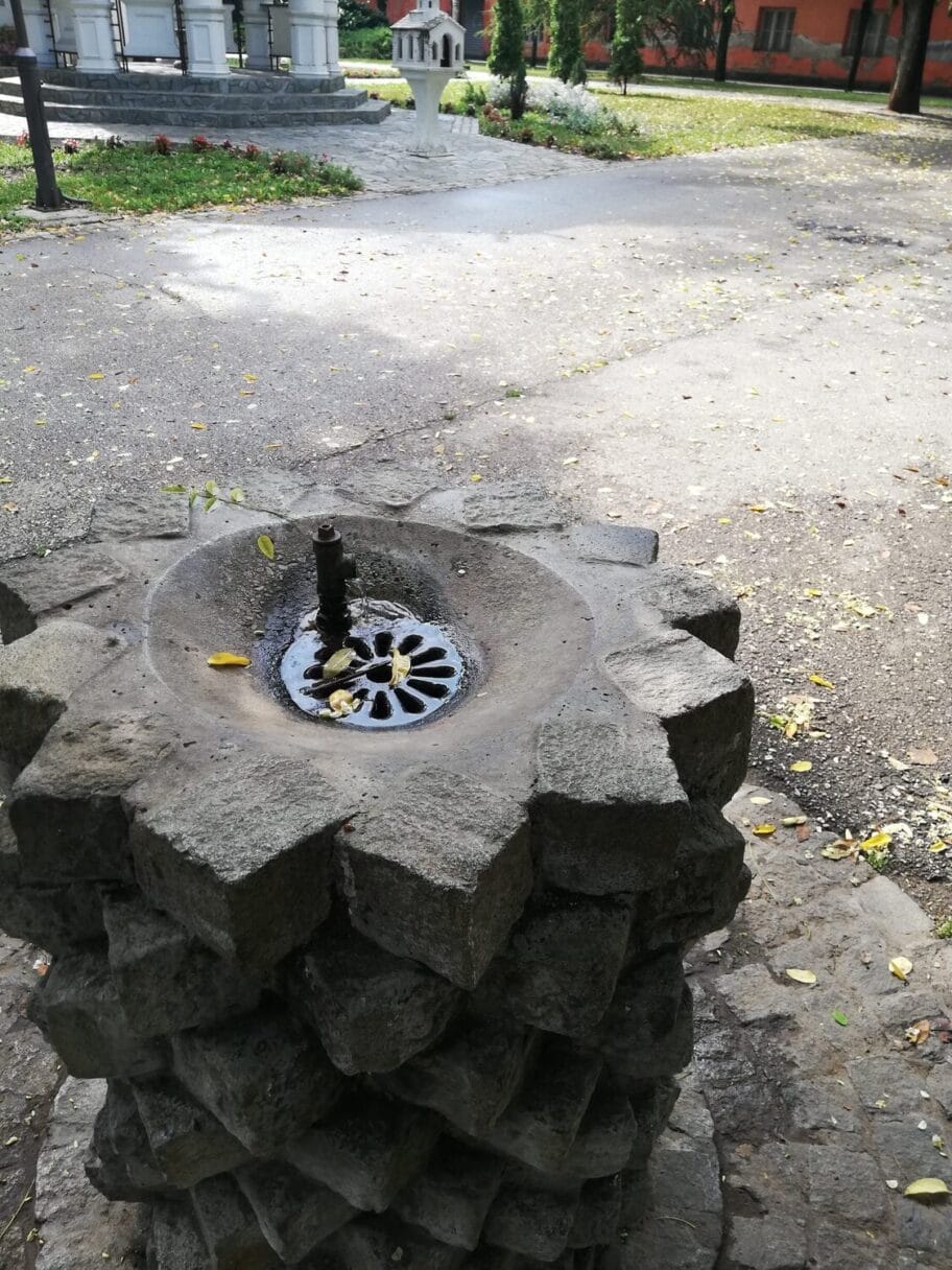 Park kod železničke stanice, neispravna slavina javne česme, curi nadole tako da je nemoguće koristiti a voda otiče. A bilo je najava postavljanja cisterne sa pijaćom vodom u vrelim danima.