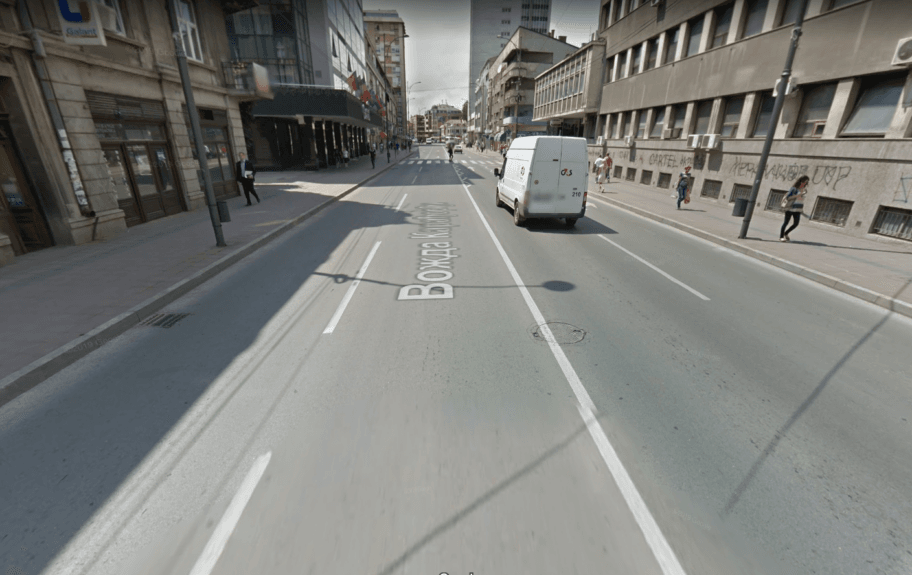 Od Doma Vojske, Voždovom do centra, pa Pobedinom do Kalče: ukupno 2 (slovima dve) kante za smeće. Ne znam gde su se dele ove kante što ih Google snimio? Na ulici ih nema više.