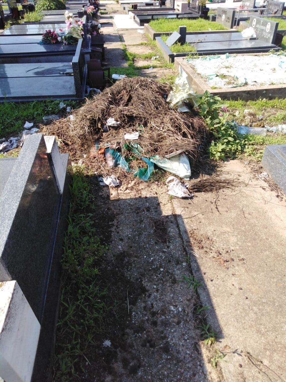 Iako se plaća održavanje groblja radnici JP Gorica travu koja je pokošena davno nisu uklonili a nova već raste. Fotografija je od 28.06.2020.godine sa Novog groblja sačinjena na parceli G 30.