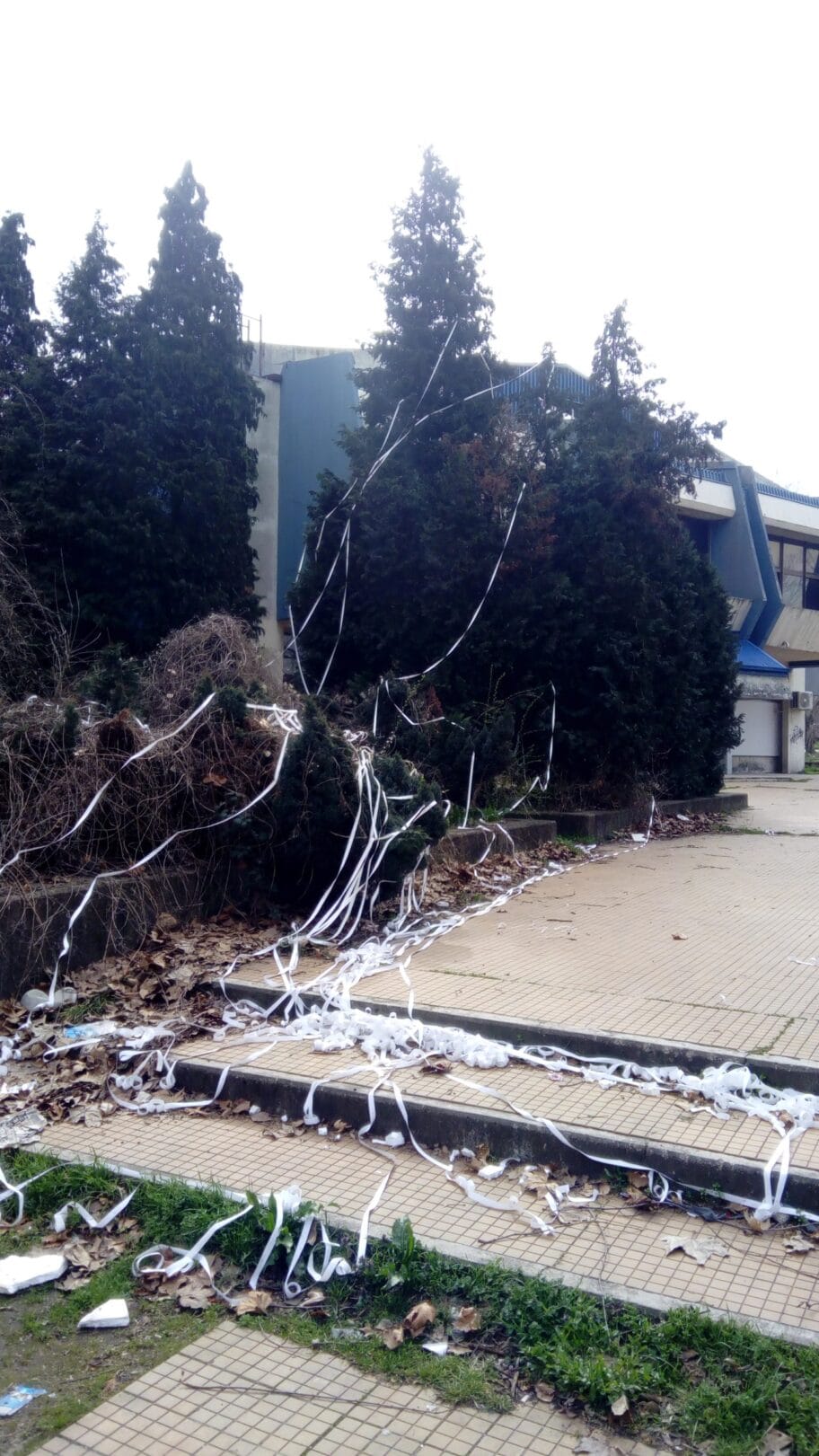 Neko je bio vredan preko noći i "ukrasio" dvorište Prirodno-matematičkog fakulteta kilometrima rolni fiskalnih računa.
