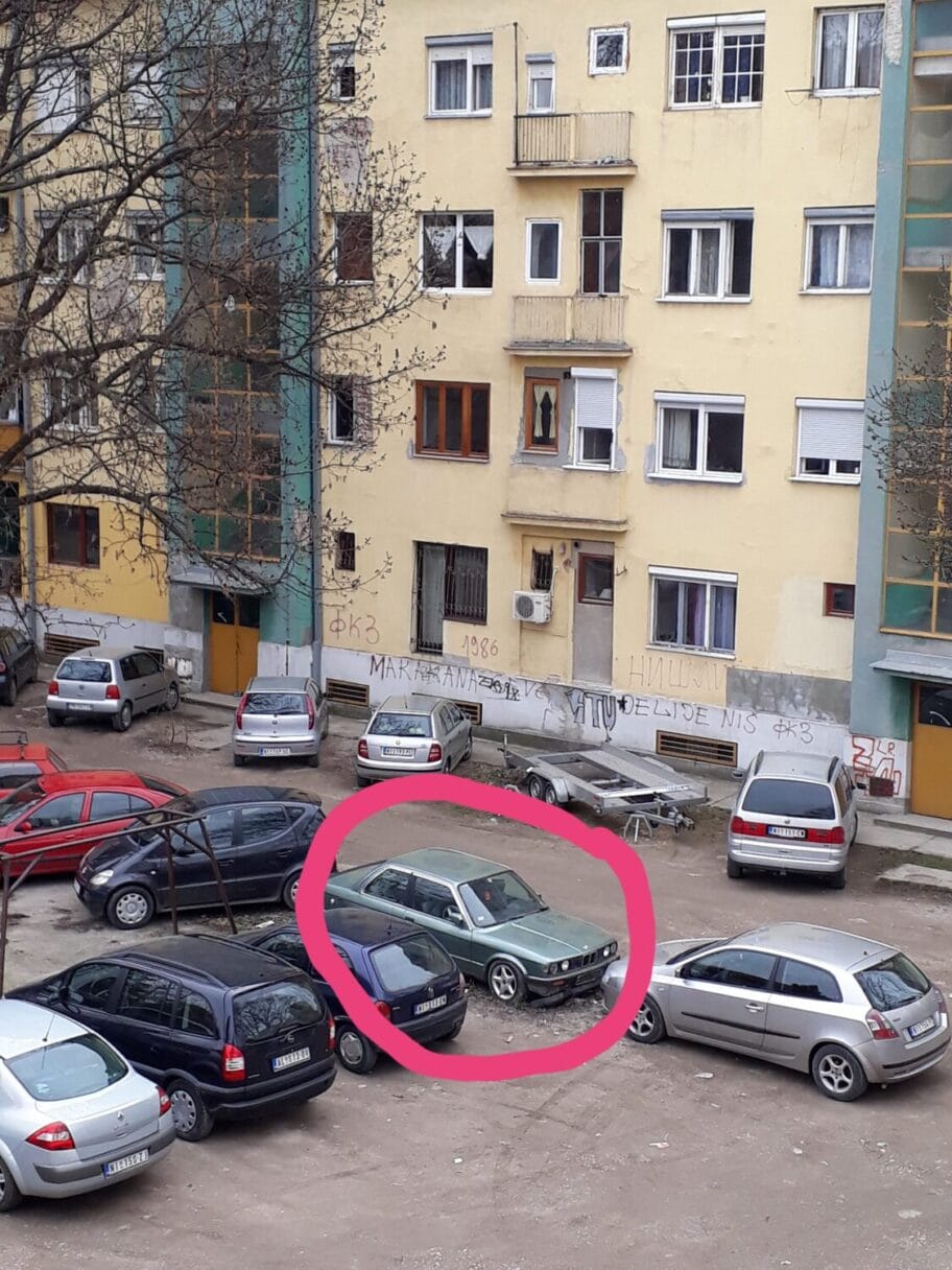 U dvorištu iza zgrade, koja se nalazi na uglu Vojvode Mišića i Dušanove ulice već više godina se nalazi automobil koji nije u voznom stanju i zauzima parking prostor. Već više dana zovem na broj Komunalne inspekcije opštine Medijana, ali niko se ne javlja.