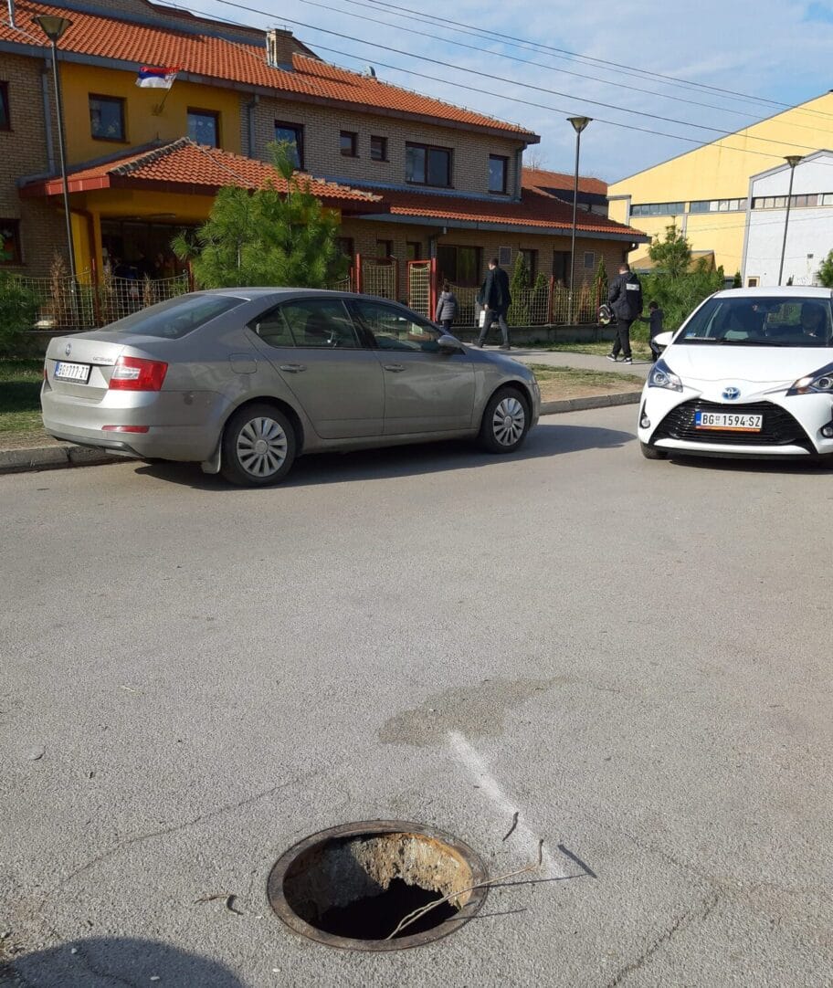 Vec mesecima upozoravani da je šahta bez poklopca i Direkcija za izgradnju i vodovod.Pozivaju se na nenadležnost i problem ostaje.Otvorena šahta je ispred samog prilaza vrticu Cvrčak i osnovne škole Dušan Radović.