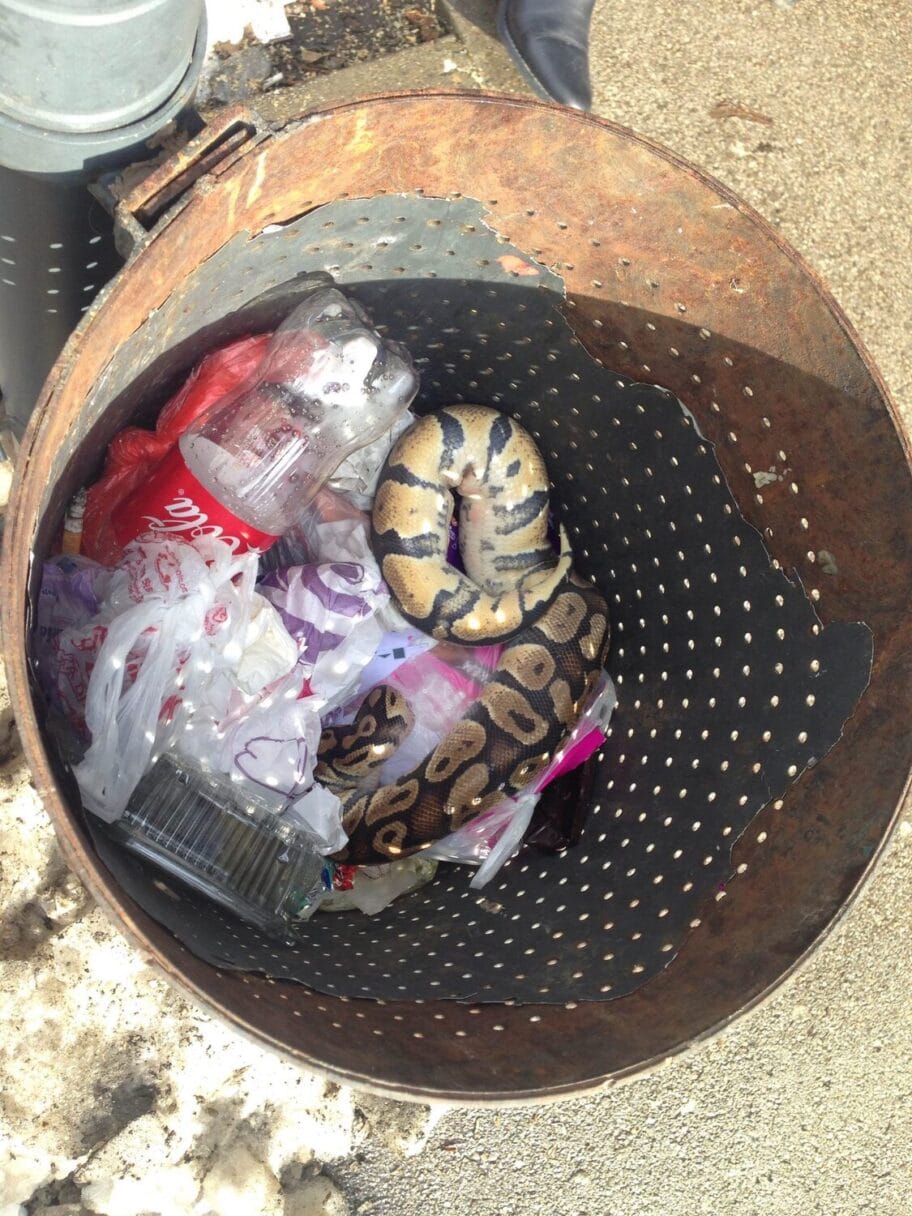 Piton u kanti za smeće tik uz Umetničku školu