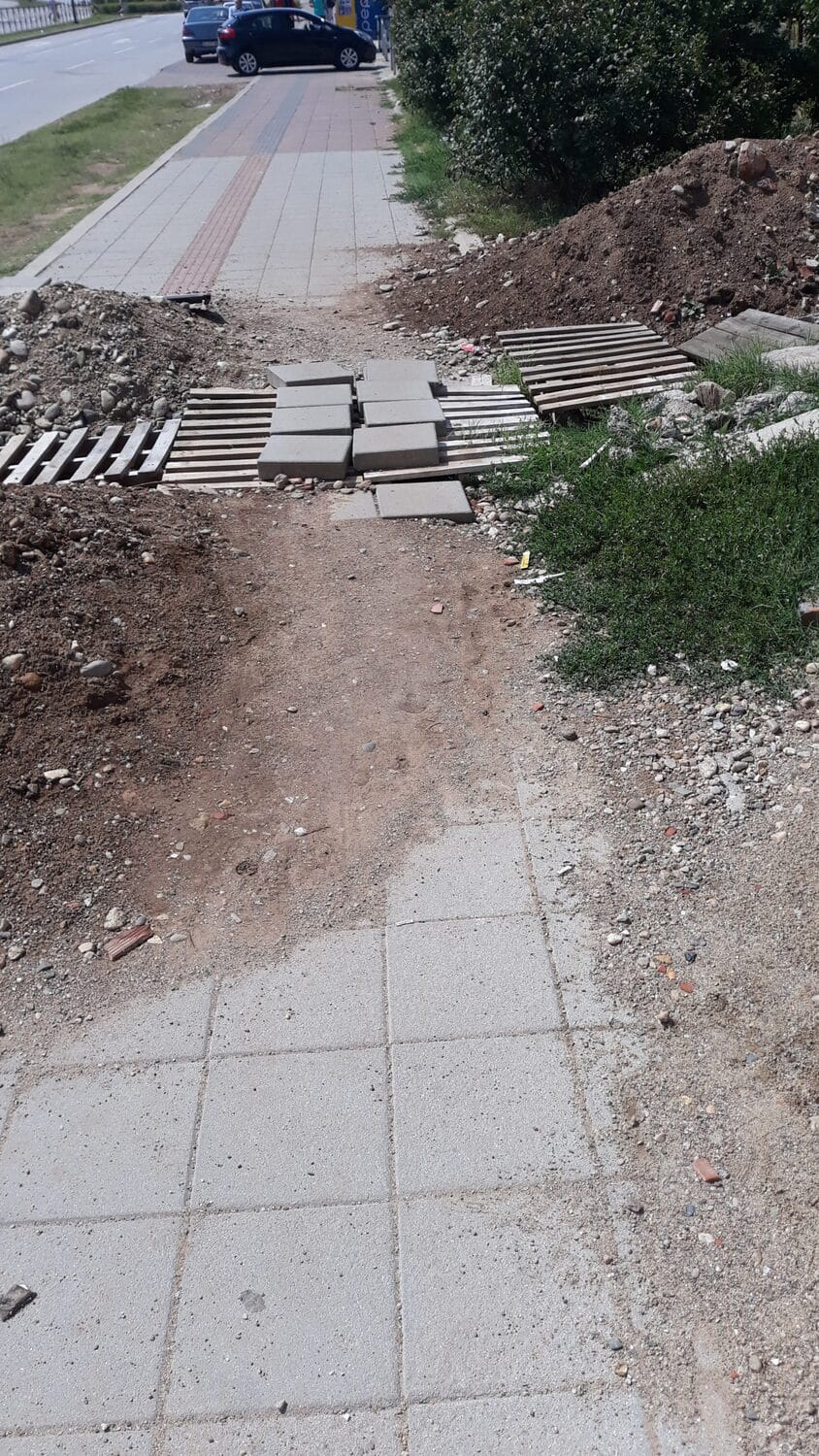 Na Somborskom bulevaru kod broja 87 (od kruznog toka sa Studenickom prema Matejevackom putu levo) prekopana je pešačka staza već dva meseca. Niko ne preduzima ništa da se taj problem reši. Najverovatnije se radi o građevinskom investitoru. Ugroženi su prolaznici koji prolaze preko improvizanog mostića, ako se to tako može nazvati.