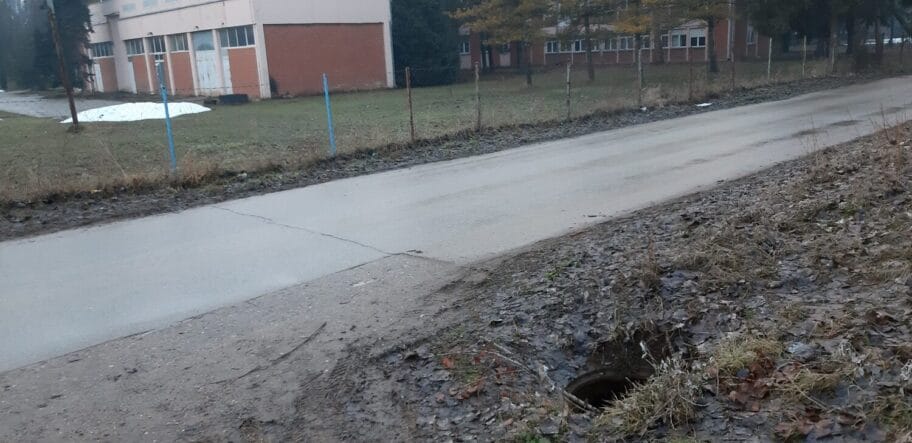 Šaht bez poklopca dubine otprilike 3-4 metara, preko puta vodovoda, pored staze za trčanje.