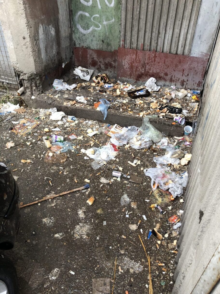 Na parkingu zgrada u Bulevaru dr Zorana Đinđića između ulaza 25 i 27 sam napravila ovu fotografiju. Stanari svakodnevno bacaju đubre iz svojih stanova i rezultat je ovo. Na automobilima često imamo opuške cigareta, hleb, meso i ostale ostatke obroka. Užas je od prljavštine i đubreta. Neretko izbacuju i cele kese kroz prozor svojih stanova.