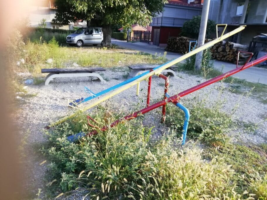 Dečije igralište u naselju Ratko Jović, pored potoka. Zaraslo u travu i korov, a potok pored njega je pun smeča i šiblja. Niko iz opštine to ne održava, niti dolazi Medijana to da sredi. Redovno ih obaveštavam i dostavljam slike. Takva je ista situacija i na ograđenom igralištu i stom anselju, gde se deca igraju na polomljenim i istulelim tribinama, a ispod njih je trava i smeće. U takvom je stanju i igralište u Humskoj ulici i dvorište vrtića Svitac.