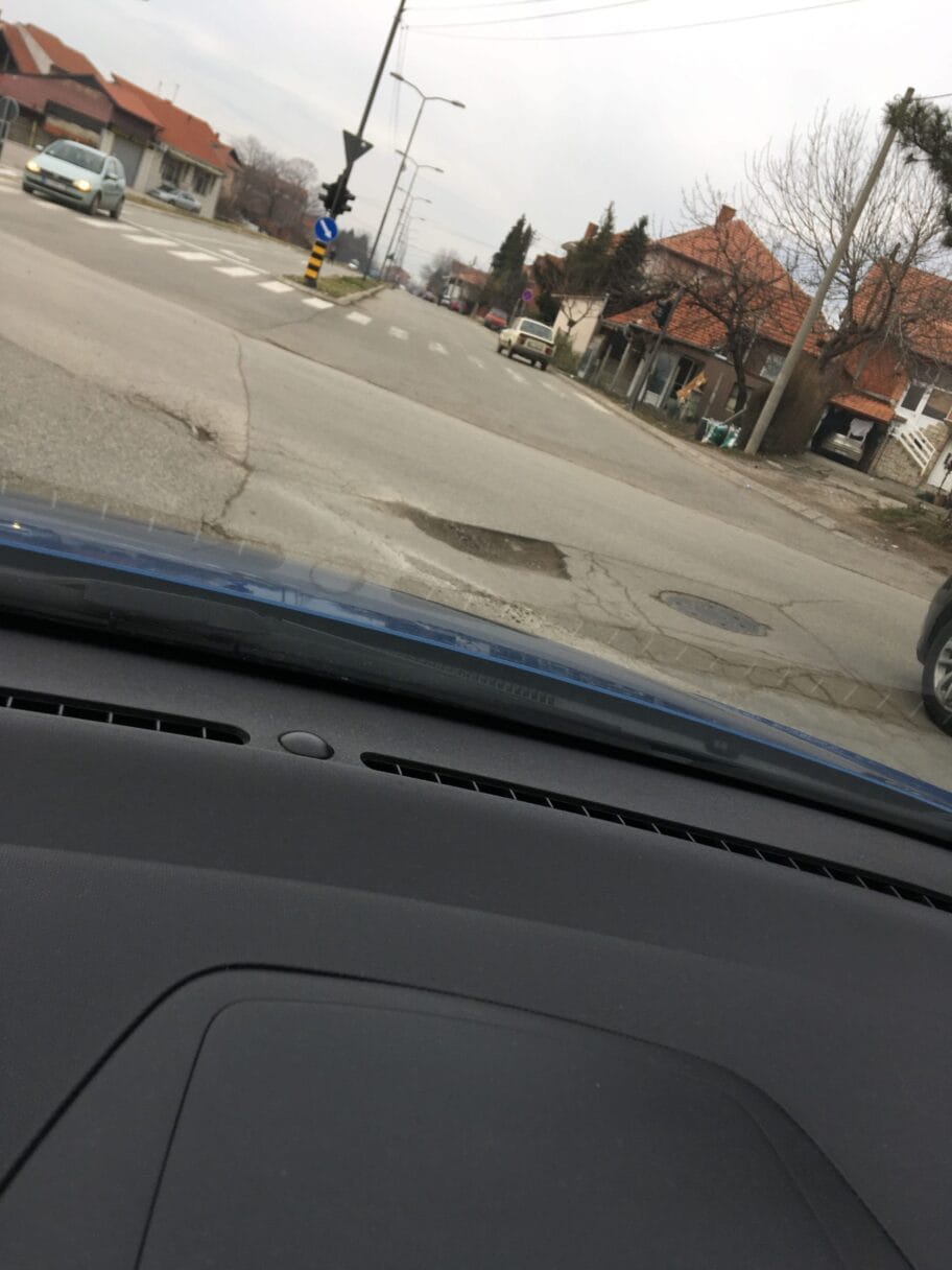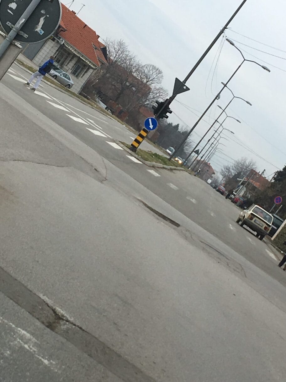 Na raskrsnici Ulice Kosovke devojke i Somborskog bulevara je udarna rupa koja je bar 10 cm duboka i 30 široka.