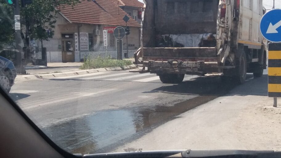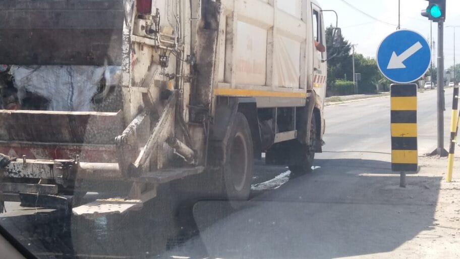 Kamion JKP "Mediana" koji prevozi smeće, ujedno pere ulice grada Niša otpadnom i veoma smrdljivom vodom koja se cedi u velikim količinama iz kamiona, teška zaraza. Lokacija je Broj 6 ka Nišu.