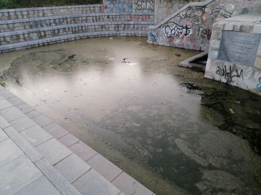 Nakon zadnjeg nevremena od pre dve nedelje, voda se izlila i niko nije došao da to sredi. Voda se pretvorila u žabokrečinu, smrdi i ima nenormalno mnogo komaraca. Nemoguće je prići česmi da se natoči voda sem ako nisi nindža pa preskačeš sve.