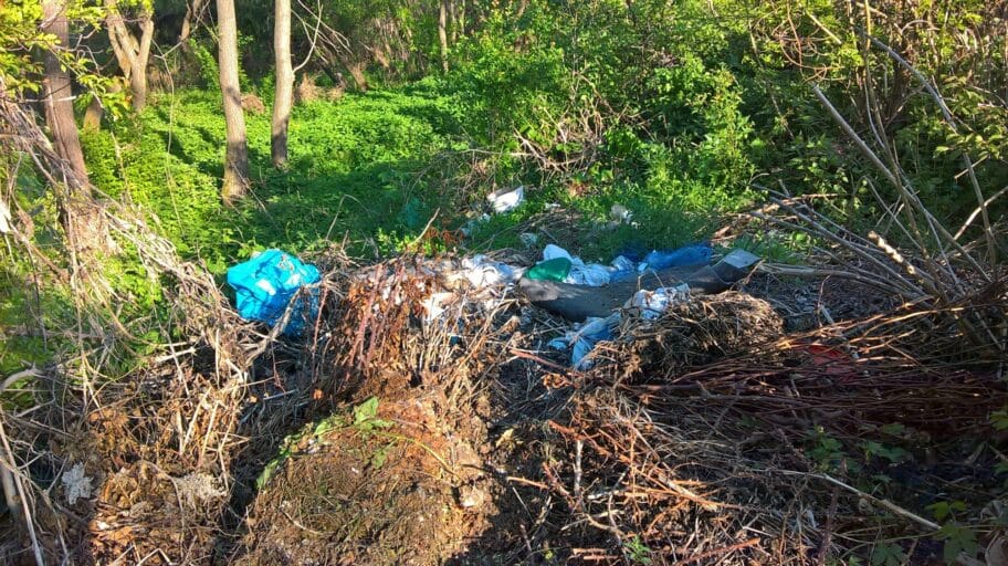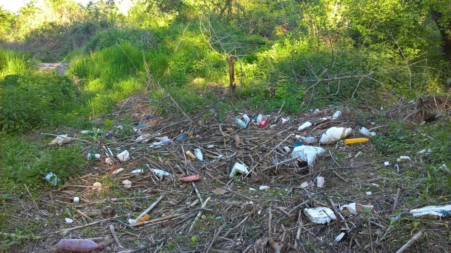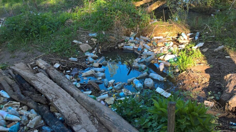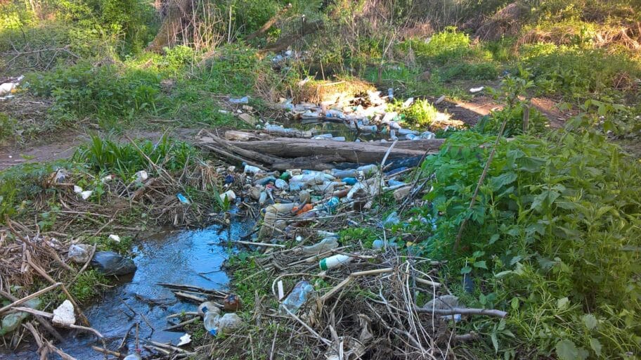 Naselje N. Tesla, na mestu gde se voda iz starog korita Nišave uliva u Kutinsku reku. Gomile otpada, plastične i staklene ambalaže, stiropora. Ekološka bomba!