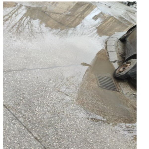 Otvor za atmosferske padavine je zapušen vec mesecima, posle svake kiše se napravi malo jezero.