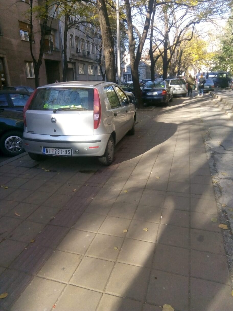 Tri automobila parkirana na stazi za slepe u Ulici Nade Tomić preko puta policijske stanice. "Svaka cast".