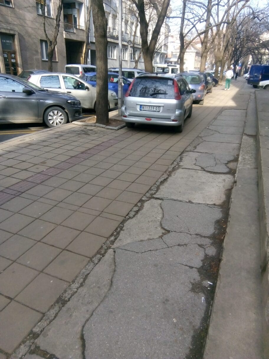 U Ulici Nade Tomić ništa novo... Slepe osobe i dalje ne mogu da hodaju trotoarom, jer je na stazi za slepe bahato parkiranje u modi... Bravo!