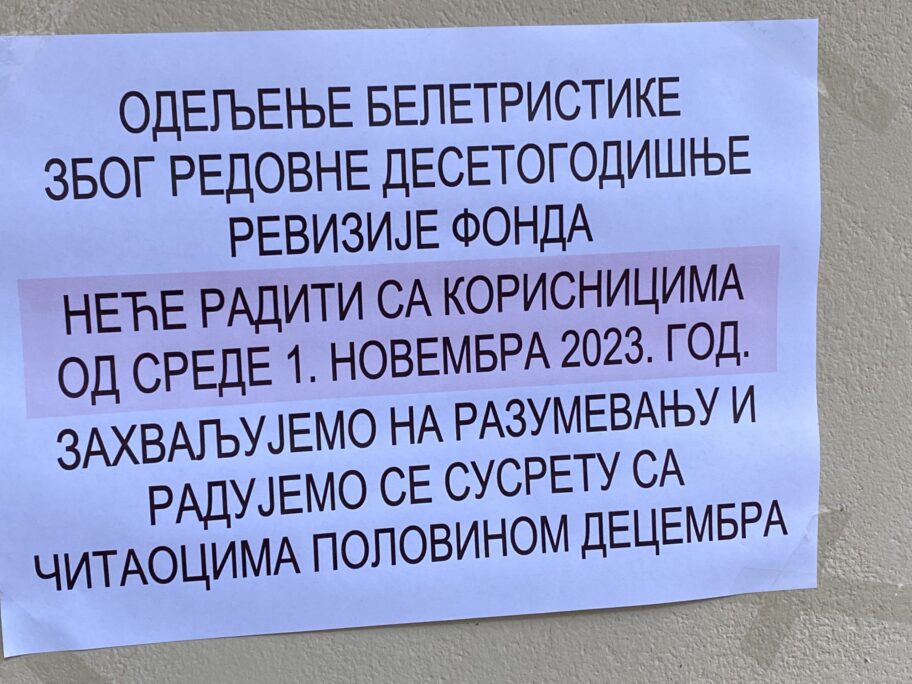 45 dana je potrebno našoj biblioteci da uradi popis.Neće raditi do polovine decembra.