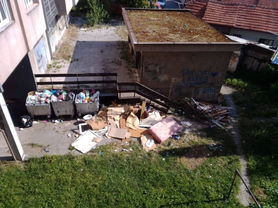 Već mesec dana pored kontejnera raste divlja deponija (stari nameštaj, stolarija, džakovi sa šutom, posečeno zelenilo, sanitarije... ). Na tom mestu su počeli da se pojavljuju pacovi, a u okolini je travnjak na kom se igraju deca iz tri okolne zgrade, koji je sada pun srče i metalnih krhotina. Pitanje dana je kada će neko od dece da se ozbiljno povredi.