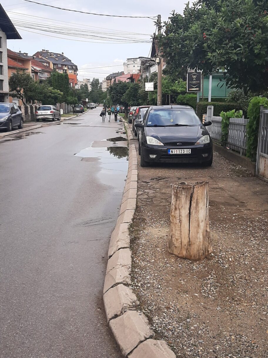 Draga redakcijo, kako je visa puta pisano direkciji za izgradnju, opstini medijana, gradonacelnici, parking servisu, skoli dusan radovic, NIKO nikada nije zeleo da se pozabavi time sto je ulica puna rupa, koje se samo prikrpe, nikako da se asfaltira cela. Nikoga nije briga sto pola ulice nema trotoara koji bi deca koristila do skole, vec idu ulicom, po barama, sa rizikom od automibila, tri kafane su u ulici, jako posećene, uvek prednost imaju vozila kafana a ne pesaci. Jkp Medijanu nije briga sto se iz ulice drvece sece preko noci, svako prisvaja parking za sebe secom drveca i sadnjom trave, vidite na slici...MOLIM VAS, DODJITE, VIDITE, SNIMITE, PRIKAZITE, nocu pola ulice nema osvetljenje, tj. ima samo jedna strana ulice, druga je u mraku. Direktora skole nije briga ono sto prati decu do i od skole, sto mu je pola trotoara oko skole u mrklom mraku, dvoriste skole puno smeca, uvek i non stop! DECA SU NAM U