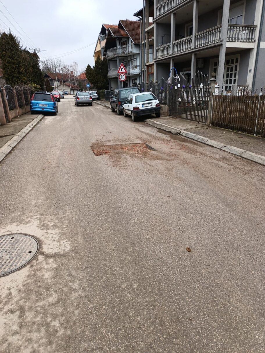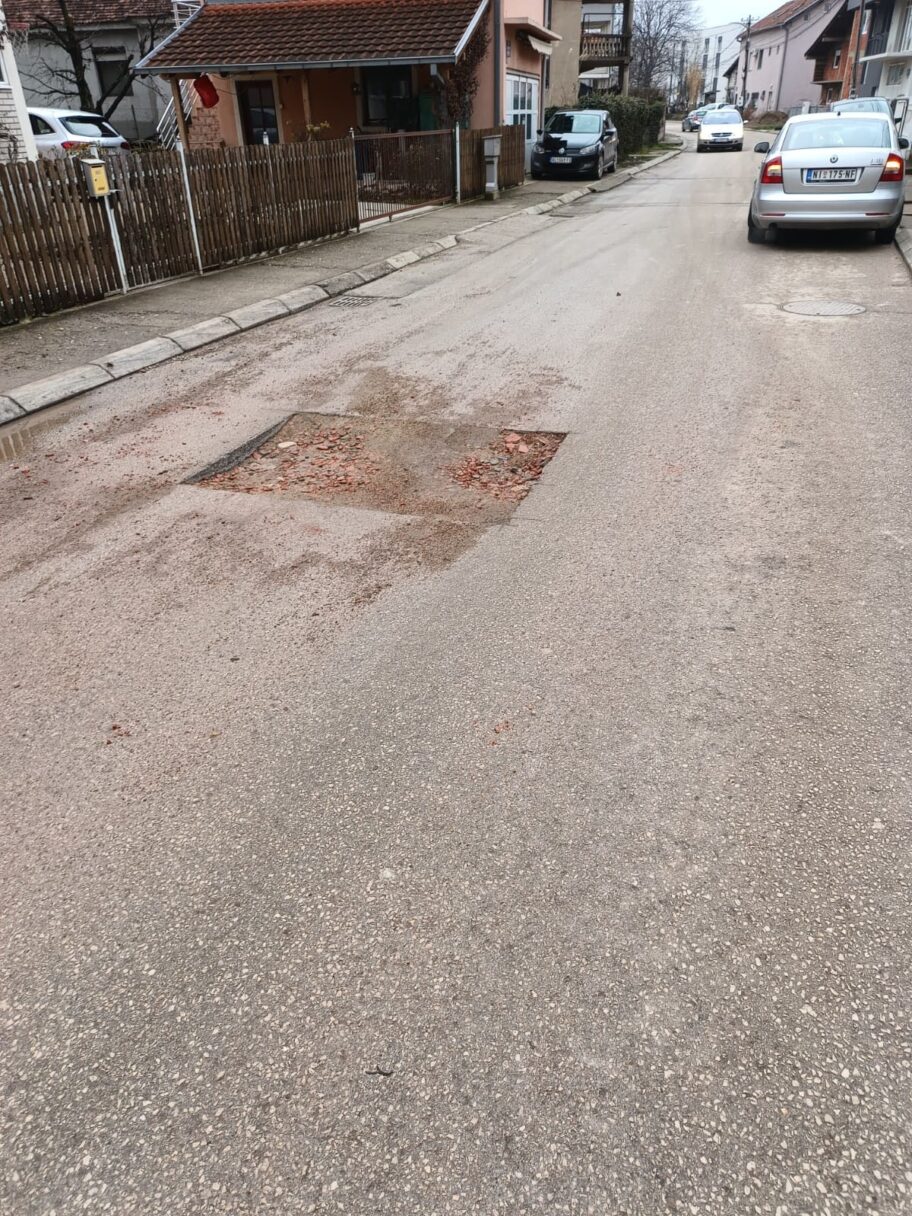 U Donjoj Vrežini, ulica Prosvetna kod broja 36-38, pre oko 40 dana radnici Naissus-a su zbog napukle cevi isekli asfalt u obliku pravougaonika dimenzije 1,5m x 1m, na sred ulice. Naravno, to je ostalo neasfaltirano. Usled kiše, napravila se rupa sa oštrim ivicama koje mogu da oštete gumu ili trap. Molim vas da prijavite nadležnima da što pre dodju i asfaltiraju rupu. Hvala unapred.