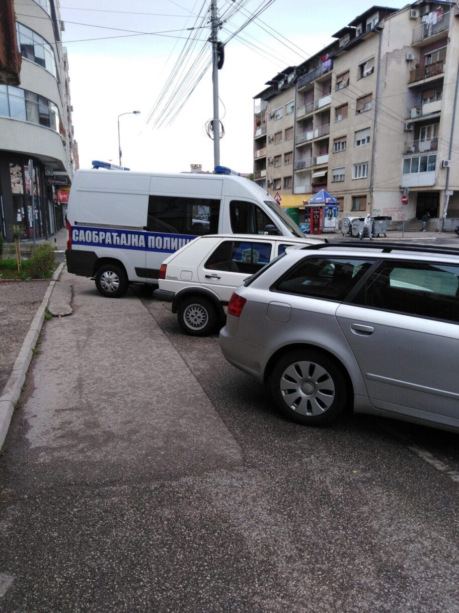 Konstantno parkiranje službenih vozila na trotoaru i pešacima je onemogućeno kretanje trotoarom!