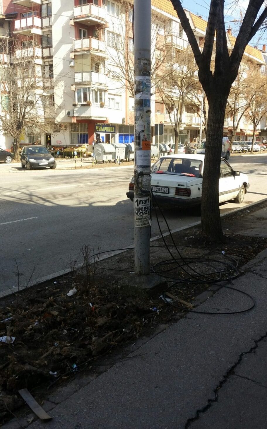 Nepoznati kablovi vise sa dve bandere. Lokacija kod Slatke kuće.