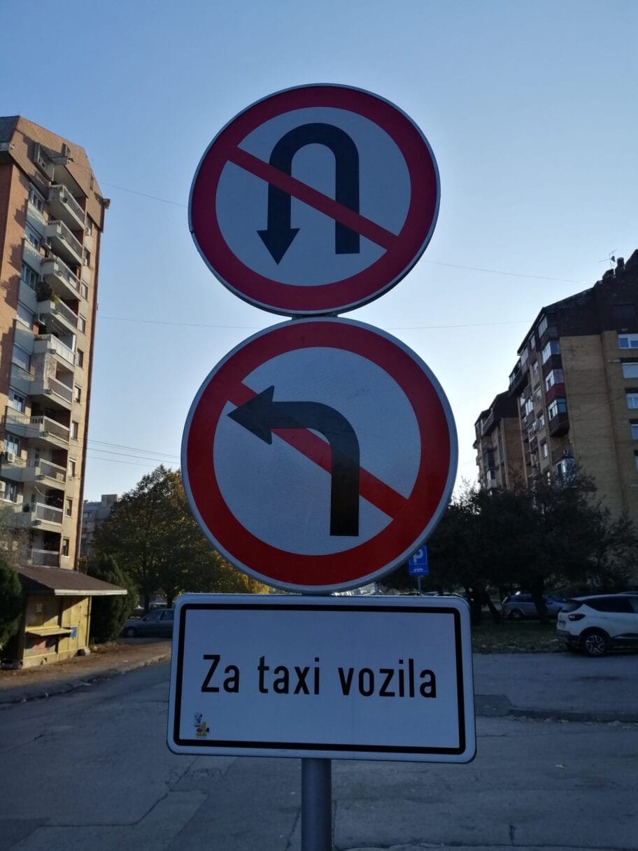 U Romanijskoj ulici je nedavno postavljen saobraćajni znak koji diskriminiše taksiste kao učesnike u saobraćaju. Naime, samo taksistima je zabranjeno polukružno okretanje i skretanje u levo, svim ostalim učesnicima je dozvoljeno. Ovakav znak treba pod hitno ukloniti! Ionako ne postoji razlog da se on nalazi na tom mestu.