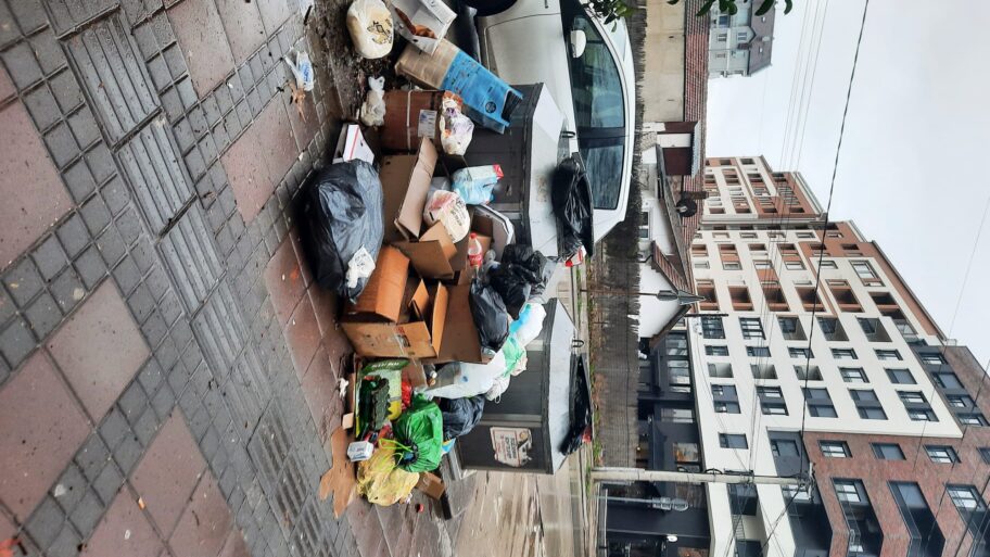 Ulica Cara Dušana, preko puta Italijanskog restorana, subota 04.02.2023.godine; inače vrlo česta slika prepunih podzemnih kontejnera i nadzemne privremene deponije
