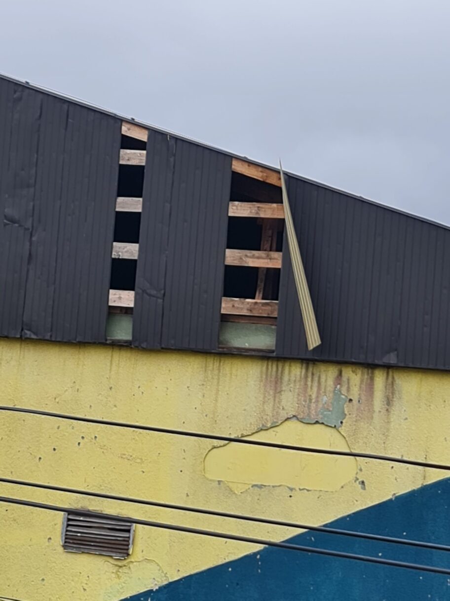 Usled vetra otpao je deo krova na Osnovnoj skoli Čegar i klati se. Tako stoji vec 10ak dana i niko ne popravlja a deca prolaze ispod.