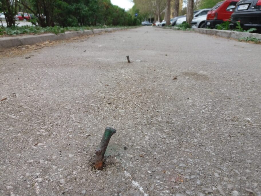 Na šetalištu preko puta ulaza garaže Niš Ekspresa, vire 2 metalna šiljka gde može ozbiljno da se neko povredi.