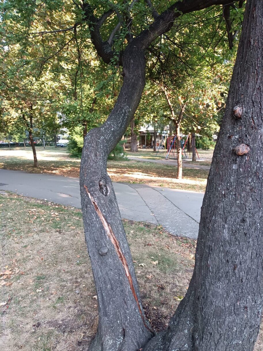 U cairu je napuklo drvo koje se nadvilo iznad pesacke staze. Drvo ima bas veliku kroznju i tesku . Nece moci da izdrzi dugo. Bolje da se krosnja olaksa ili da se nesto preduzme po tom pitanju. U cairu ima puno drveca koje bi trebalo da se oreze (ne isece vec samo oreze) da ne bi pravilo problem kad padne sneg.