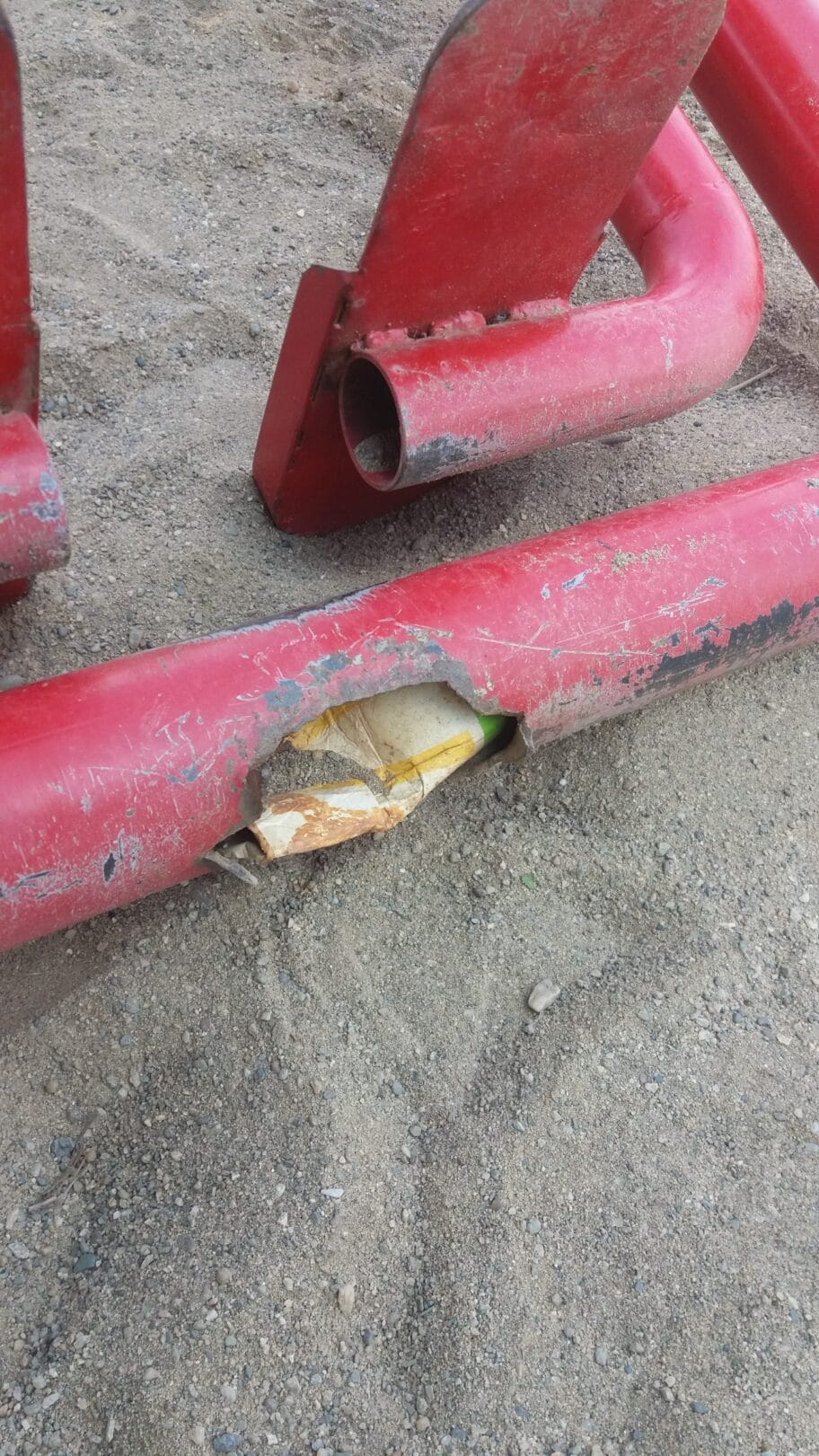 Na keju gde su postavljene sprave za vežbanje jedna je polomljena i predstavlja opasnost i za decu i za odrasle. Deca se rado igraju u tom pesku, ali je nebezbedno i postoji opasnost da se povrede.