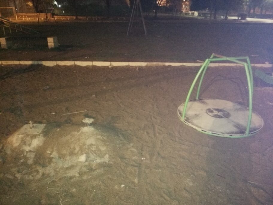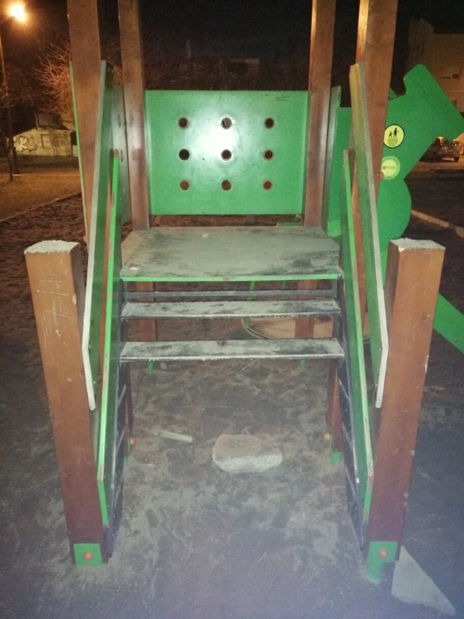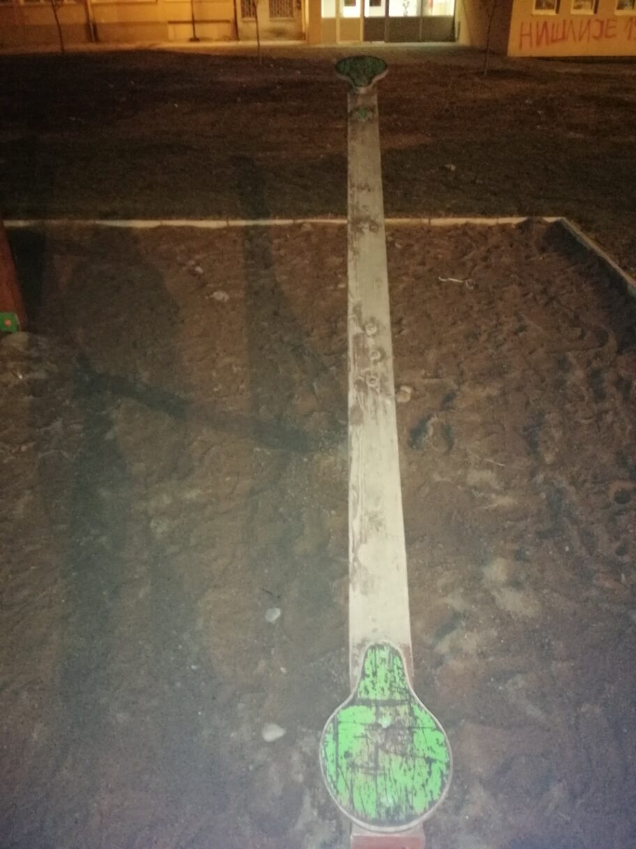 Polomljen mobilijar ispred niške osnovne škole "Miroslav Antić-Mika" u naselju Durlan