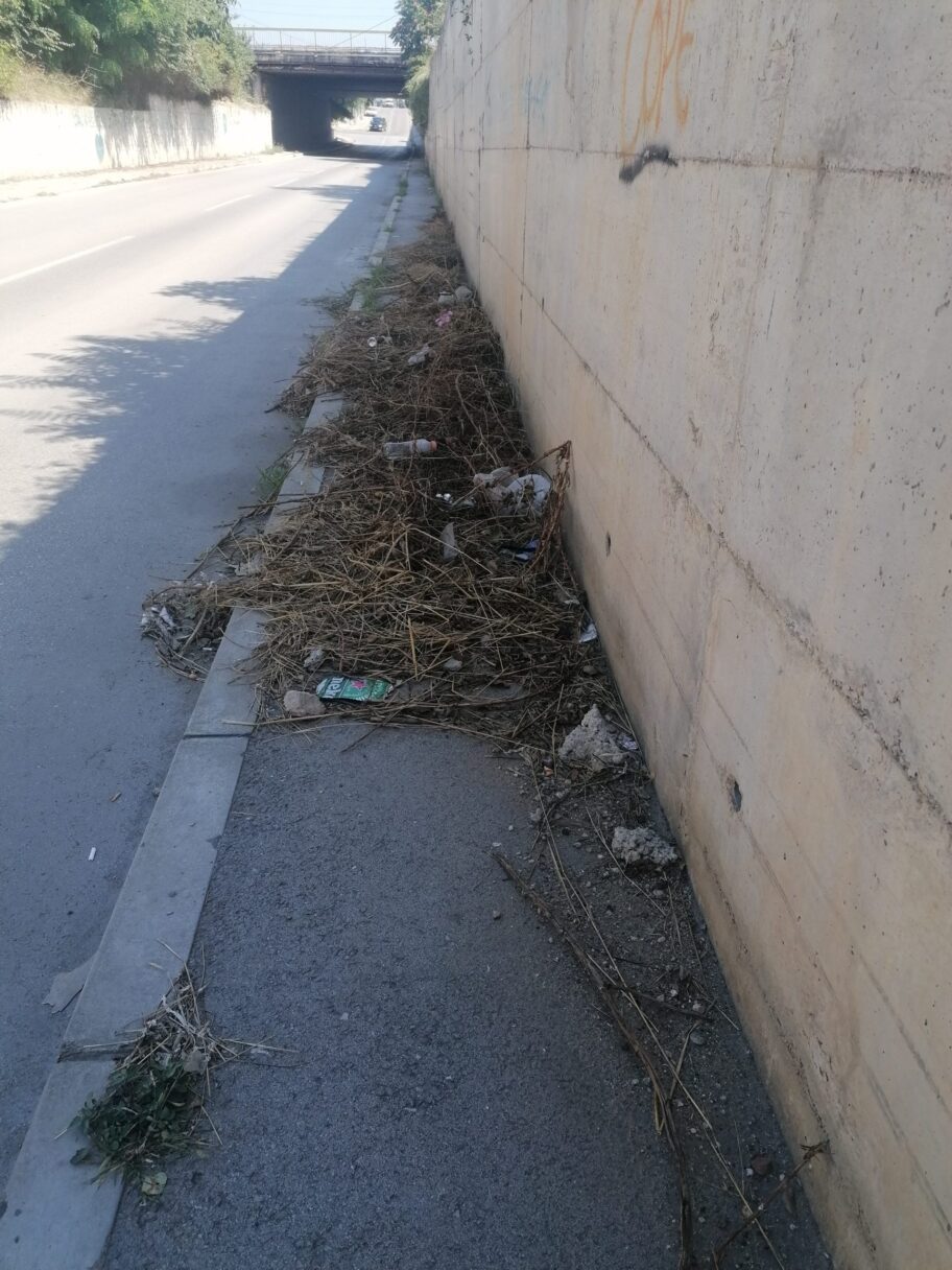 U ulici Humskoj, opština Crveni krst, od pruge prema podvožnjaku nemoguće je ići pešaka jer svo rastinje pada preko trotoara tako da je u nivou glave.