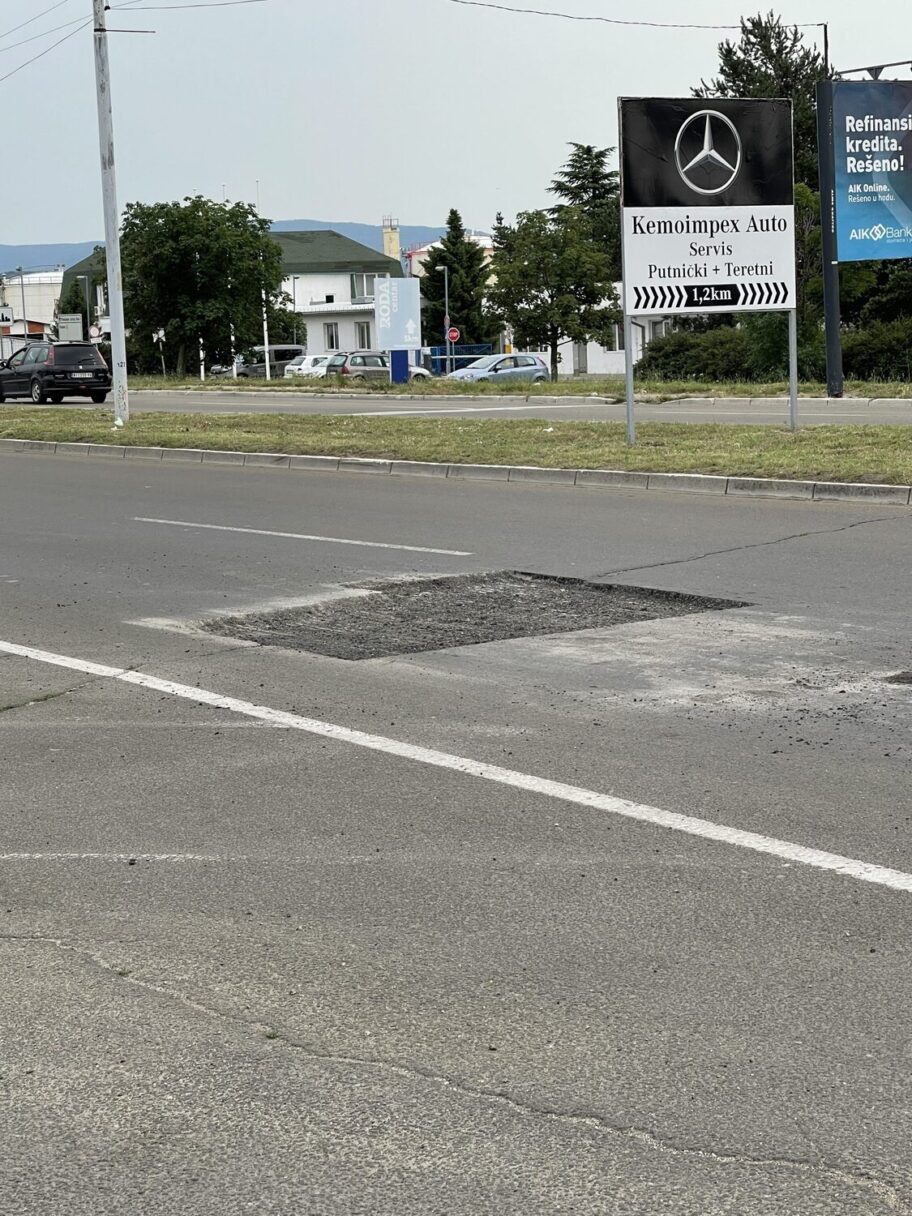 Da ne bi ostetili automobil poput mene, na raskrsnici Bul. Nikole Tesle i Bul. 12 Februar u smeru ka naplatnoj rampi postoji nekoliko iskopina koje nisu obelezene i nemaju nikakvu signalizaciju i velikih su precnika.