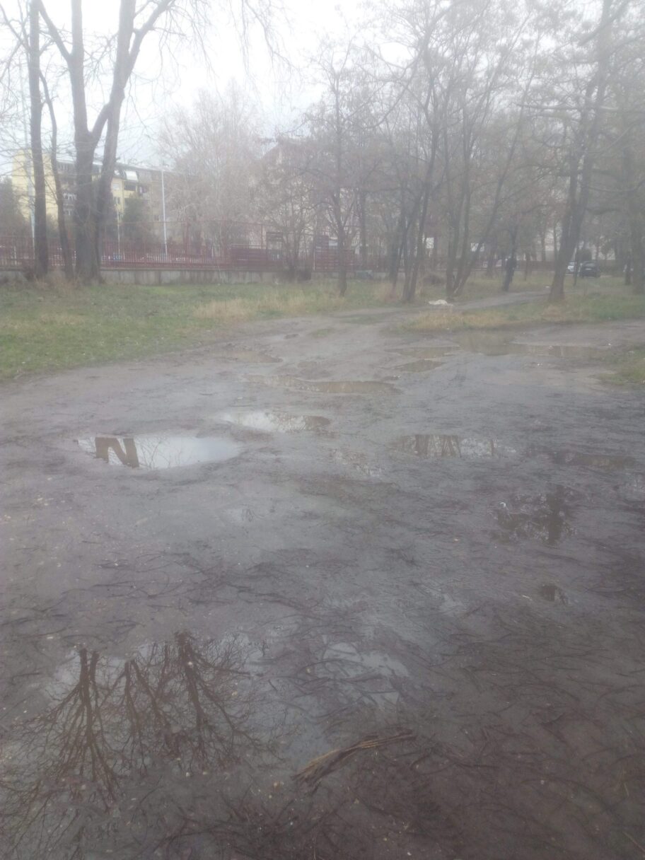 Iza zgrada u Sremskoj ulici i iza OS Car Konstantin nalazi se zelena povrsina. Kada padne iole malo kise, napravi se blato i ta staza postaje neprohodna. Vec nekoliko godinama se zalimo nadleznim institucijama da rese ovaj problem, ali evo dosla je jos jedna zima i nista! Molimo vas da nam pomognete. Nas zahtev je da se nanese sljunak ili asfaltira jedan deo staze.