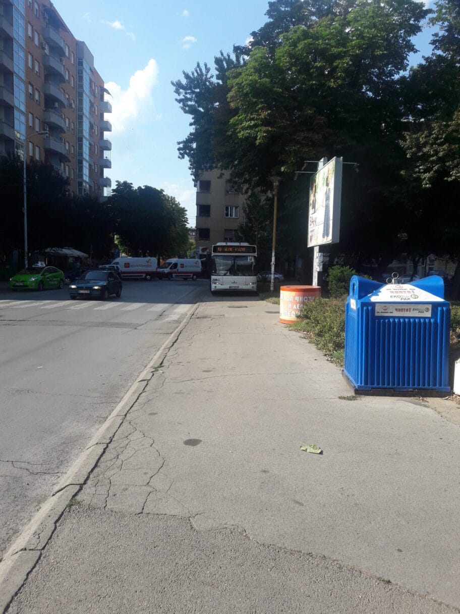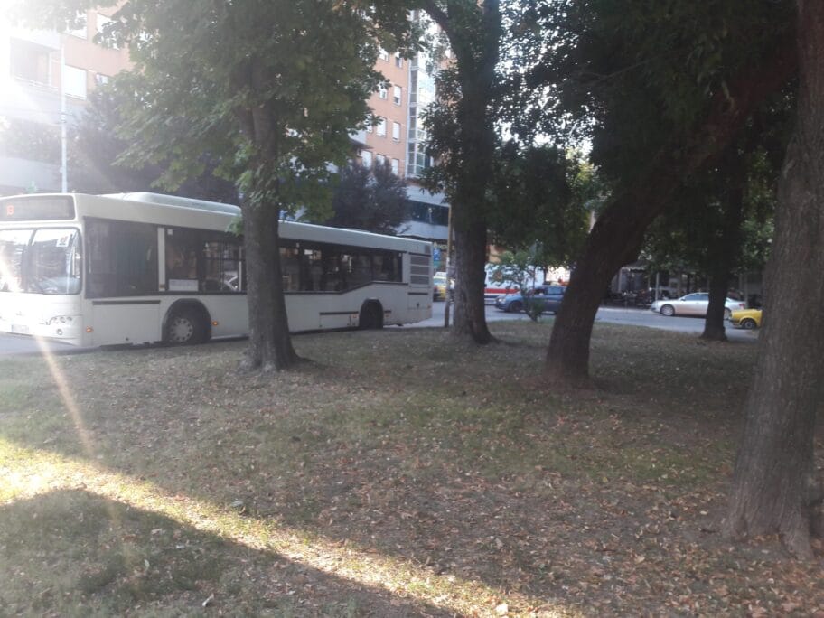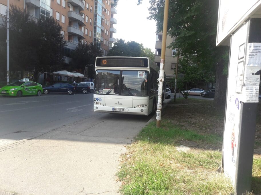 Autobus prevoznika "Ćurdić" koji saobraća na liniji 13. parkiran je na trotoaru Trga.
