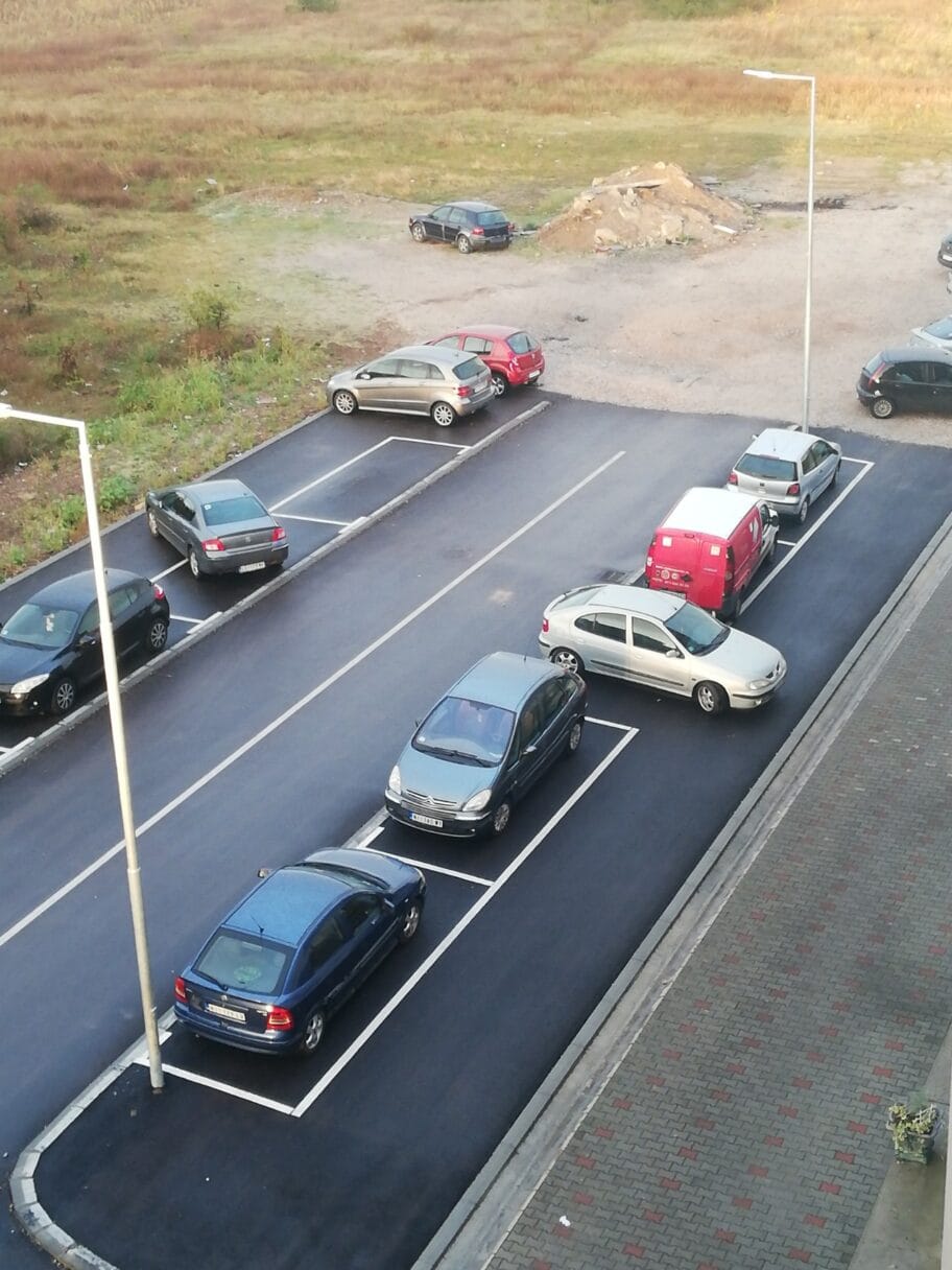 Ulica Franca Vintera. Haos sa parkiranjem iako je propisno obeleženo.