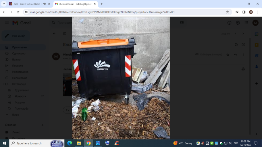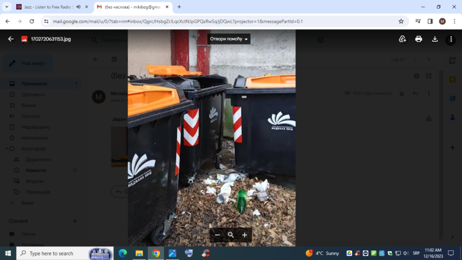 U centru grada izvršioci J.K.P. Medijana bacili skupljeno lišče kod kontejnera Lokacija . Stambena zgrada Orlovića Pavla 1B kod garaža,i kod ulaza u dvorište Glavne pošte