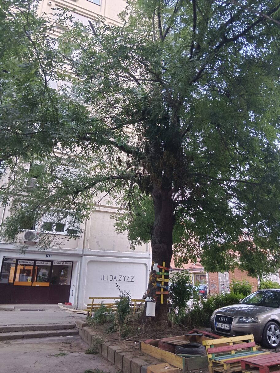 Prijavljivan 10-ak puta nadlažnim službama,niko ne reaguje . Drvo ispred zgrade na Bul.Nemanjića 70A totalno nebezbedno.