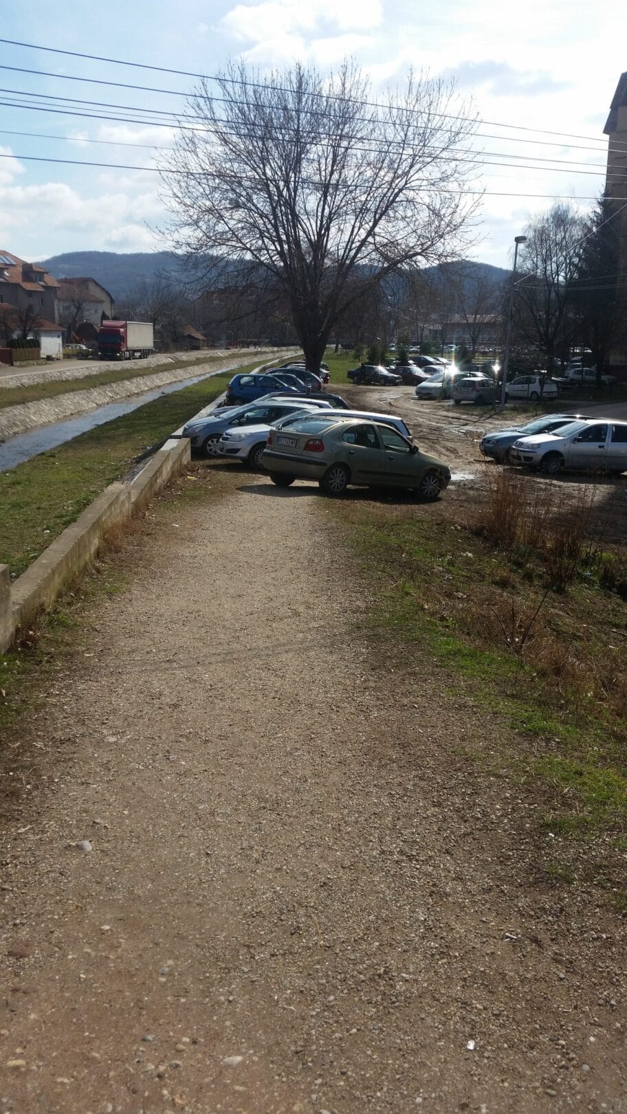 Parkiranje na zelenoj površini, bedemu Gabrovačke reke u Romanijskoj ulicu. Umesto da kej služi za šetnju pretvoren je u parking gde se vozila parkiraju sve bliže mostu tako da sledećeg očekujemo da blokira most pa će pešaci da preskaču reku.
